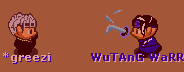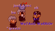 Greezi is loosing 11, to 14, now 8 to 14, Wutang is owning, now 6.5 to 12.5, now 3.5 to 11, now 2 to 11 now .5 to 9.5.